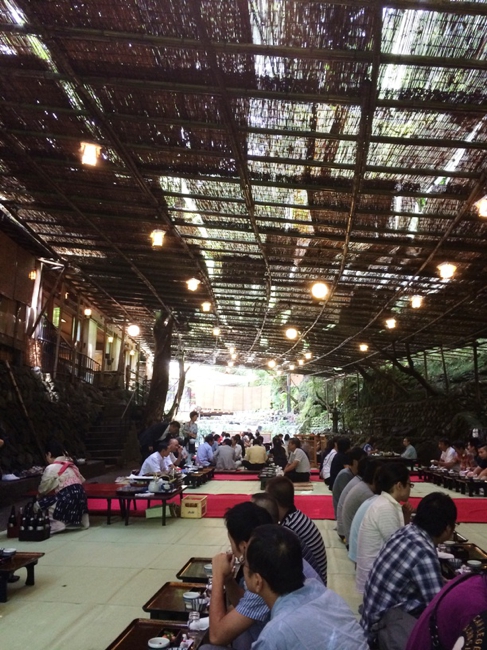 翌日は天候が心配されましたが、朝には晴れ上がり、京都ツアーには丁度良い天候となりました。後で聞いた話しでは、「晴れ男ならぬ、晴れ女」がいたそうです。川床での昼食は、暑い京都で涼を楽しんでの食事を期待しましたが、寒いくらいの気温でした。鮎はもちろん美味でした。